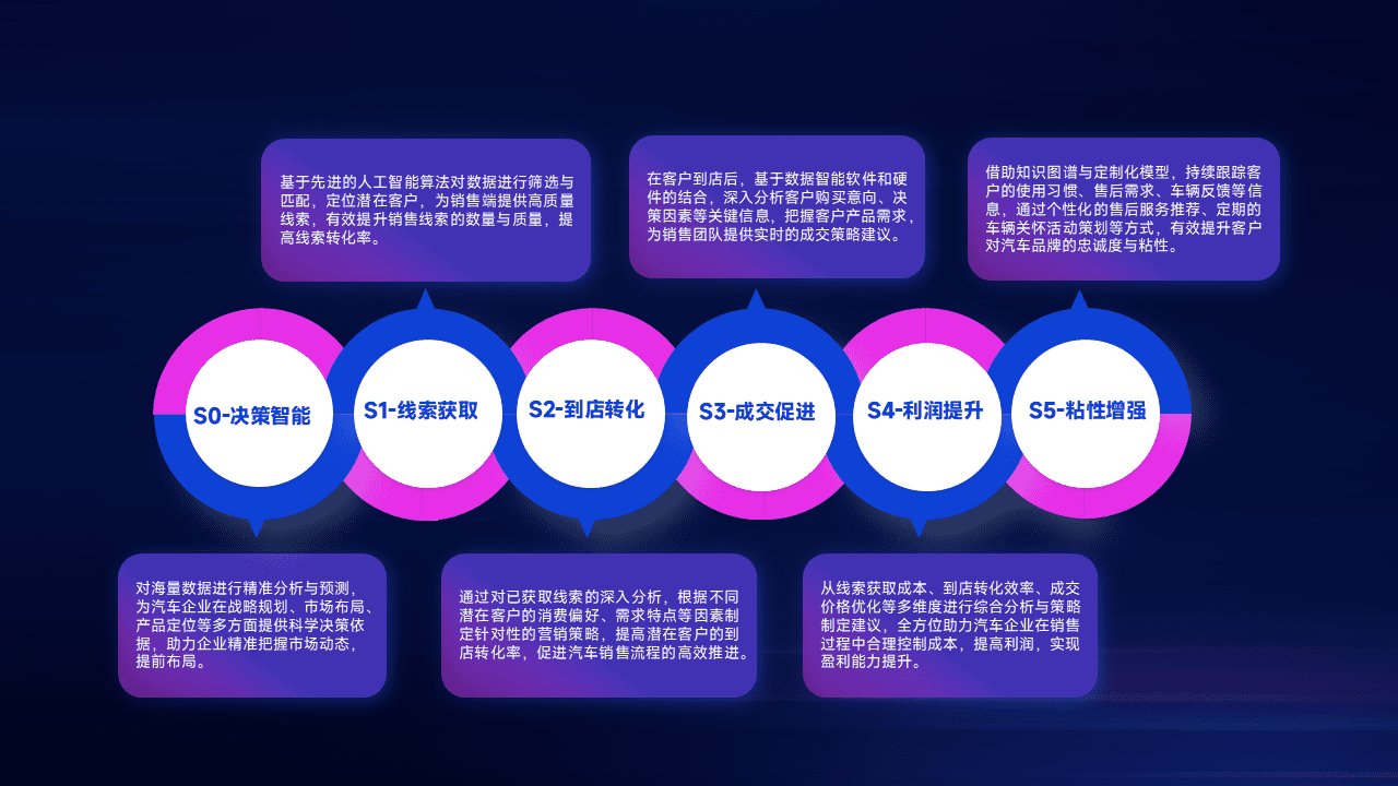 通过拓宽潜在客户来源、、、、优化线索分配并提高到店转化率,,以增强销售效率。。同时,,利用线索数据不断优化分析模型,,,有效提升转化率,,,,扩大营销影响力。。。